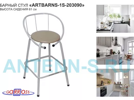 "ARTBARNS 1S-195193" cтул барный, табурет, спинка, высота 0,61метра, 22мм,серые ножки/Вольт 01 ткань