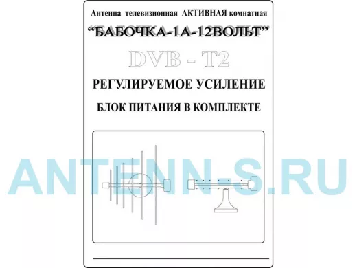 - "БАБОЧКА- 1А-5ВОЛЬТ" АКТИВНАЯ комнатная телевизионная антенна предназначена для приема цифрового DVB-T2 и аналогового телевизионного сигнала ДМВ диапазона