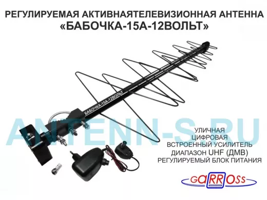 "БАБОЧКА-15А-12ВОЛЬТ" РЕГУЛИРУЕМАЯ АКТИВНАЯ ЧЁРНАЯ уличная антенна DVB-T2, с регулируемым усилителем