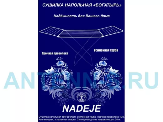 - "БОГАТЫРЬ" NADEJE сушилка напольная СИНЕ-БЕЛАЯ 20 метров, предназначена для сушки белья
