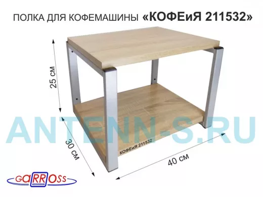 Полка под кофемашину к стене, высота 27см, серый каркас "КОФЕиЯ 211532" полки 30х40см, дуб