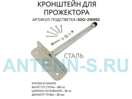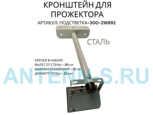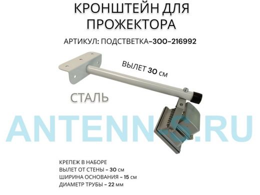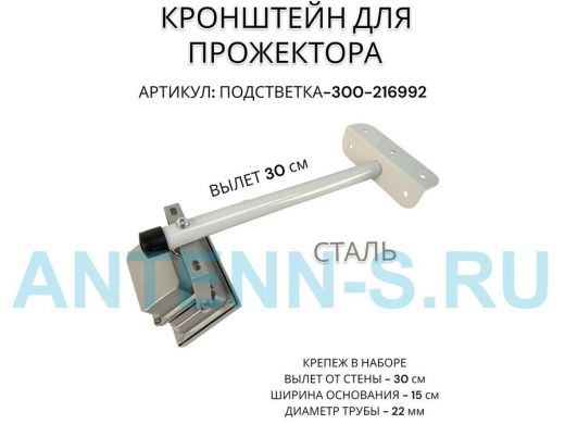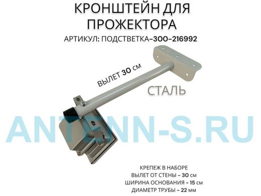 Кронштейн для прожектора "ПОДСВЕТКА- 300-216992" серый с уголком на рекламные щиты, вылет 0,3м