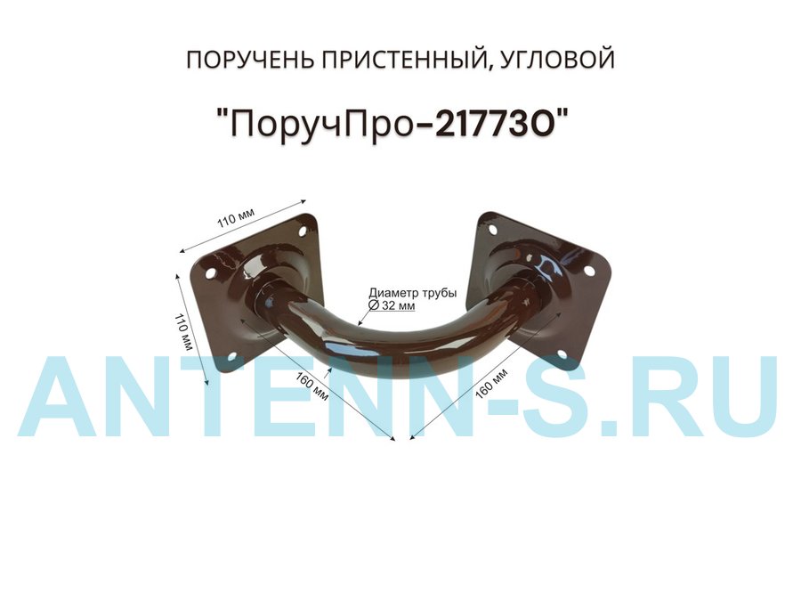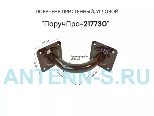 Поручень угол 90 гр, 16см "ПоручПро-217730" пристенный, вылет 16см, тёмно-коричневый, диаметр 32мм
