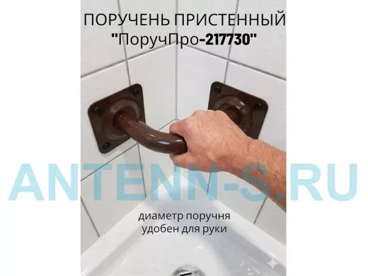Поручень надежно крепится к стене при помощи анкеров или шурупов с дюбелями