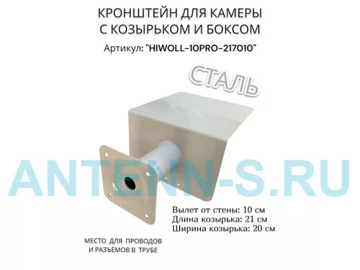 Кронштейн с боксом и козырьком для видеокамеры "HIWOLL-10PRO-217010" серый, вылет 10см, сталь