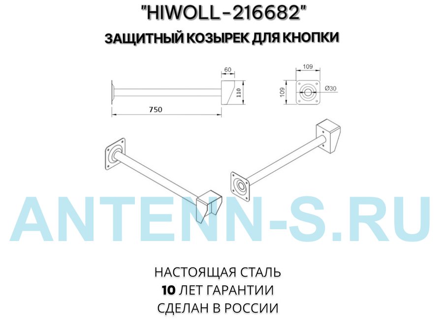 Стальной защитный козырек для кнопок выхода с вылетом от стены 75см "HIWOLL 216682" серый, 8х11см