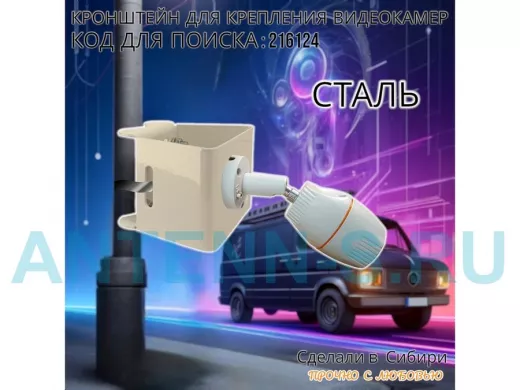 - Универсальный усиленный кронштейн предназначен для крепления видеокамеры на трубе диаметром от 15 до 51мм или на столбе.