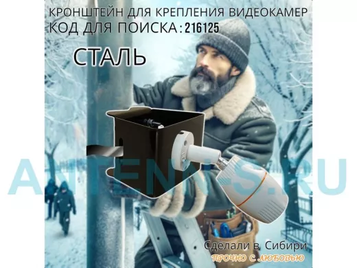 - Универсальный усиленный кронштейн предназначен для крепления видеокамеры на трубе диаметром от 15 до 51мм или на столбе.