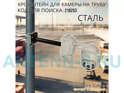 - Кронштейн предназначен для крепления поворотной или цилиндрической камеры на трубу.