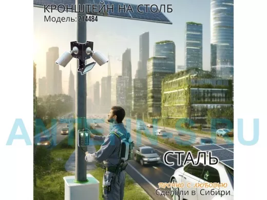 - Кронштейн позволяет быстро зафиксировать камеры видеонаблюдения или прожектор на столбе, не сверля его.