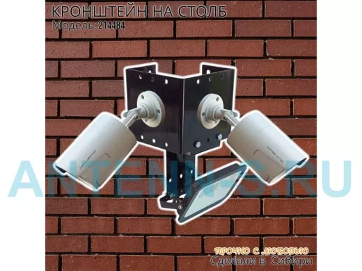 - Кронштейн для двух камер и прожектора, крепится при помощи СИП ленты монтажной на квадратный или круглый столб.