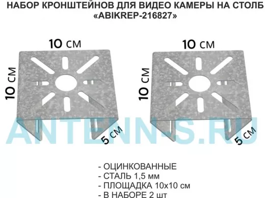 Набор из 2-х кронштейнов "ABIKREP-216827". Предназначены для крепления поворотной видео-камеры или прожектора на столбе.