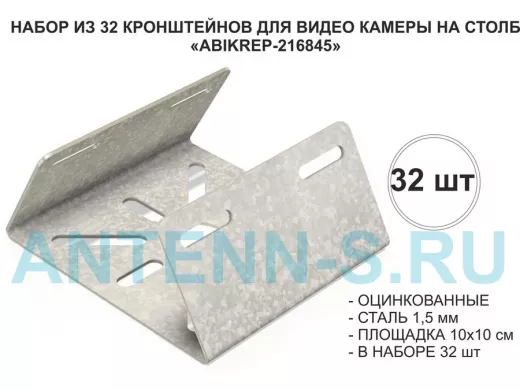 Набор 32 шт. Кронштейн оцинкованный для камеры на столб "ABIKREP-216845" 100х104мм, сталь,под хомуты