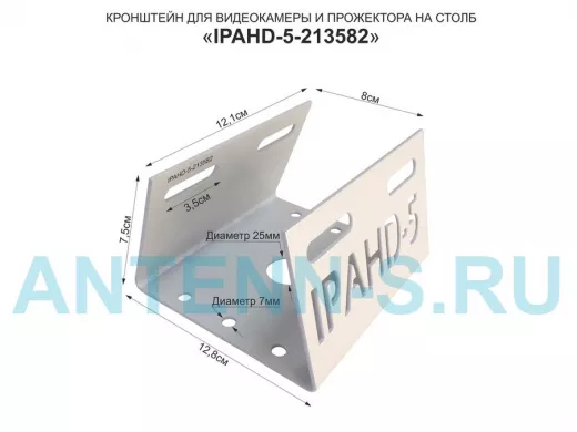 Кронштейн для камеры и прожектора на столб "IPAHD-5-213582" серый под СИП-ленту, хомут, вылет 75мм