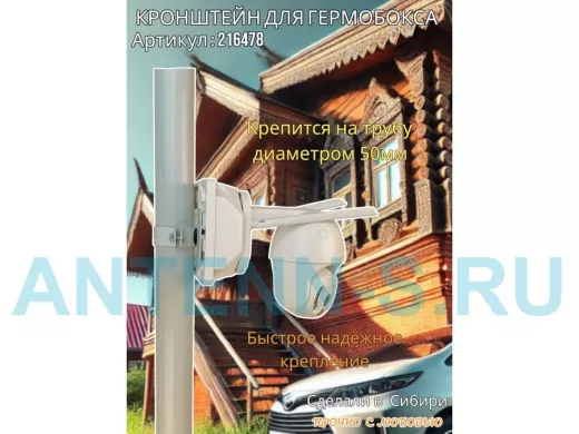 Кронштейн позволяет быстро зафиксировать гермобокс с видеокамерой на трубу.