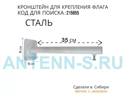 Кронштейн для крепления одного флага на стене угол 90гр вылет 35см "ФЛАГОКРЕП-215855" сталь, белый