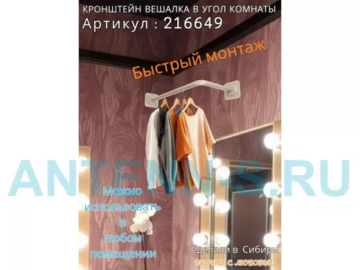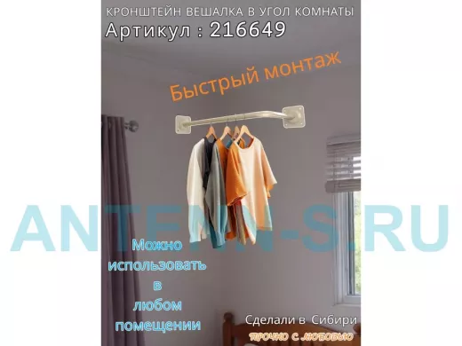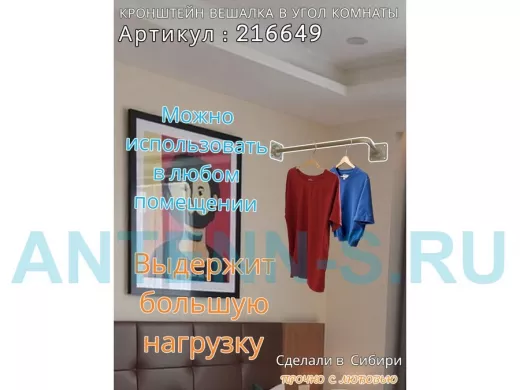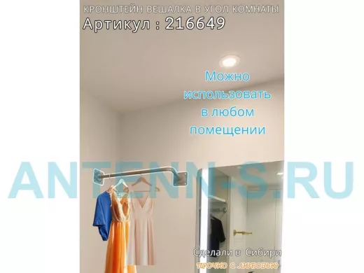 - Кронштейн для плечиков с одеждой, используется для установки в угол комнаты или к потолку.