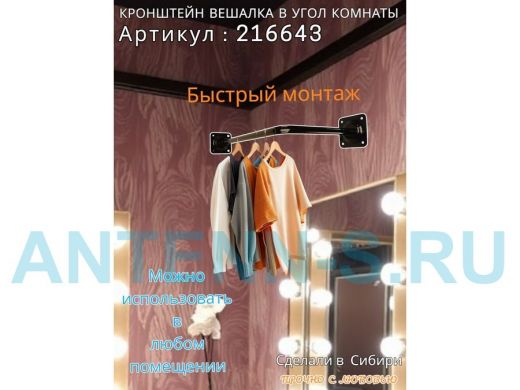 - Кронштейн для плечиков с одеждой, используется для установки в угол комнаты или к потолку.