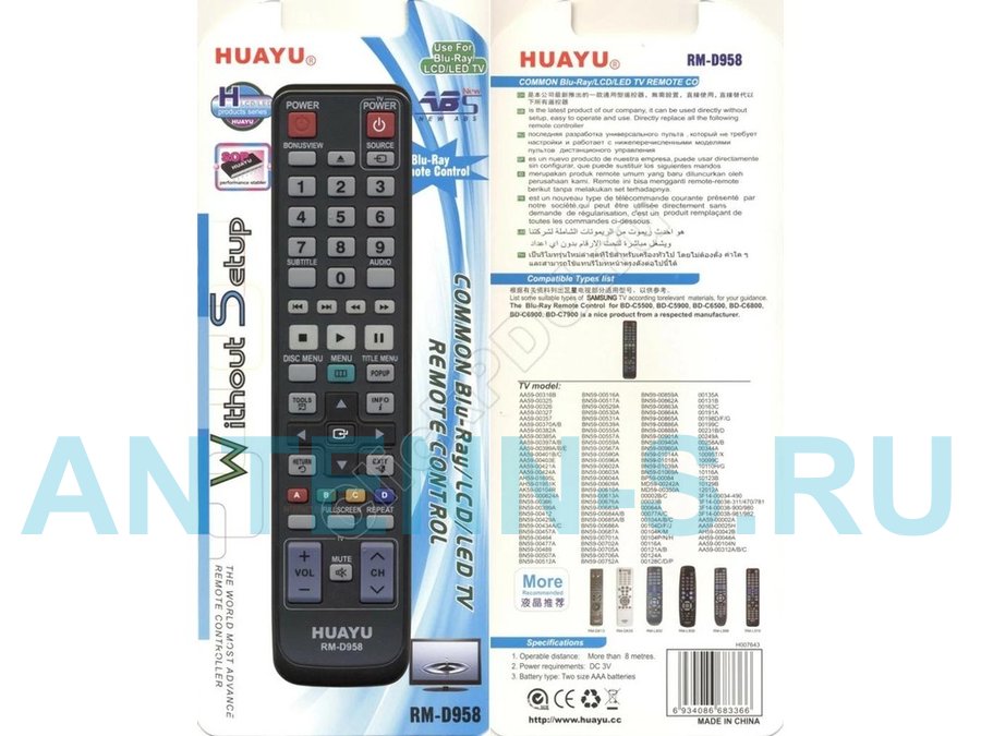 В корзину Купить в 1 клик Пульт универсальный SAMSUNG RM-D958 "PLT-19183" корпус AH59-02299A ( AK59-00104R) HUAYU