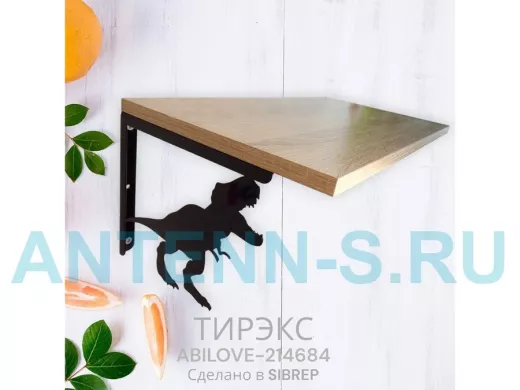 Полка с динозаврами "ТИРЭКС ABILOVE-214684" для конструкторов, машинок, дуб сонома, 30х60см