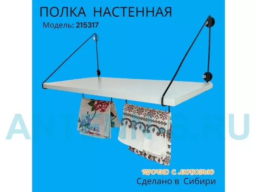 Полка для микроволновки размер 60х30 см "ПАПАОС 215317" черный и сосна выбеленная с держателями