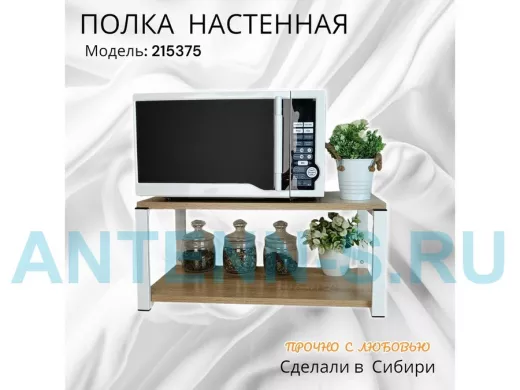 Полка надежно крепится к стене при помощи анкеров или шурупов с дюбелями, на ней можно разместить микроволновую печь, кухонную технику, посуду, специи