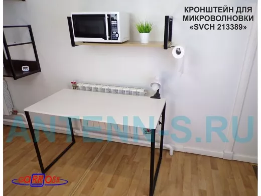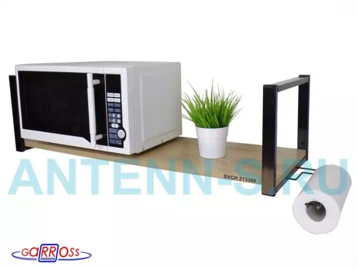 Кронштейн для СВЧ, 25см черный, 90х30см, держатель полотенец правая сторона"ПолкаКрепка-213389"дуб