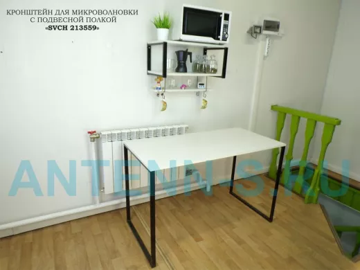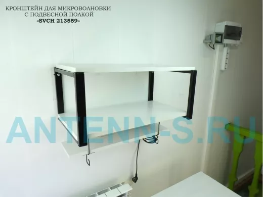 Кронштейн для микроволновки с подвесной полкой, высота 27см, черный "SVCH 213559" 60х30см, сосна