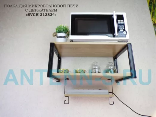 Полка для микроволновки, 27см черный "ПолкаКрепка-213824" 60х30, дуб сонома, с держателем фильтра