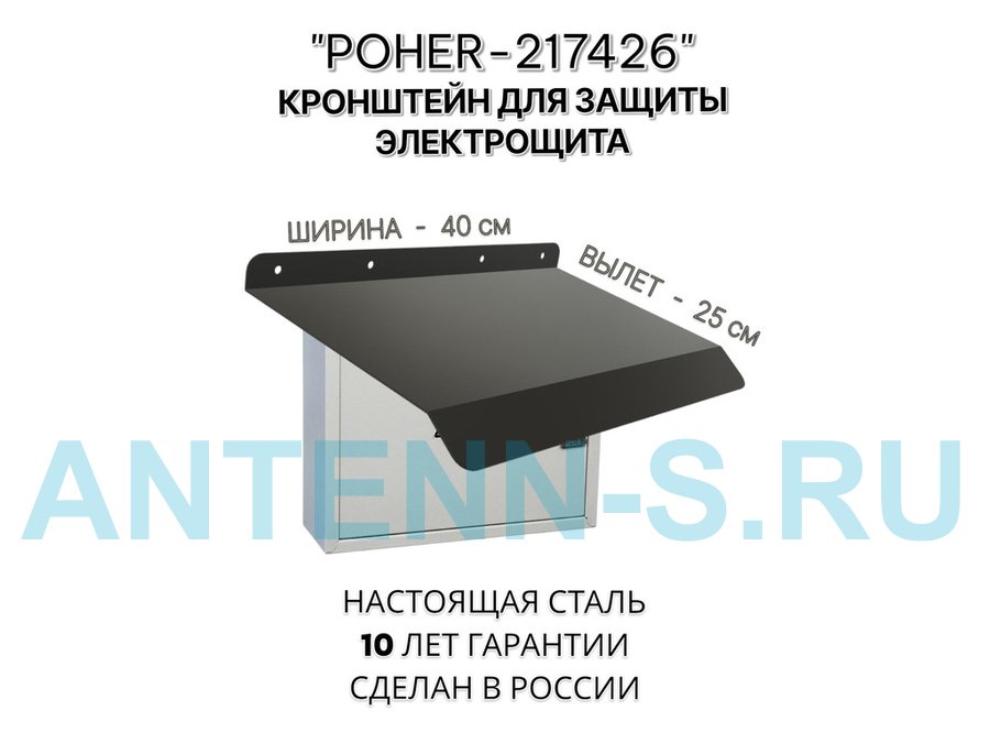 Козырёк для защиты электрощита от дождя "POHER-217426" черный, ширина 41 см, вылет 27 см, сталь 2 мм