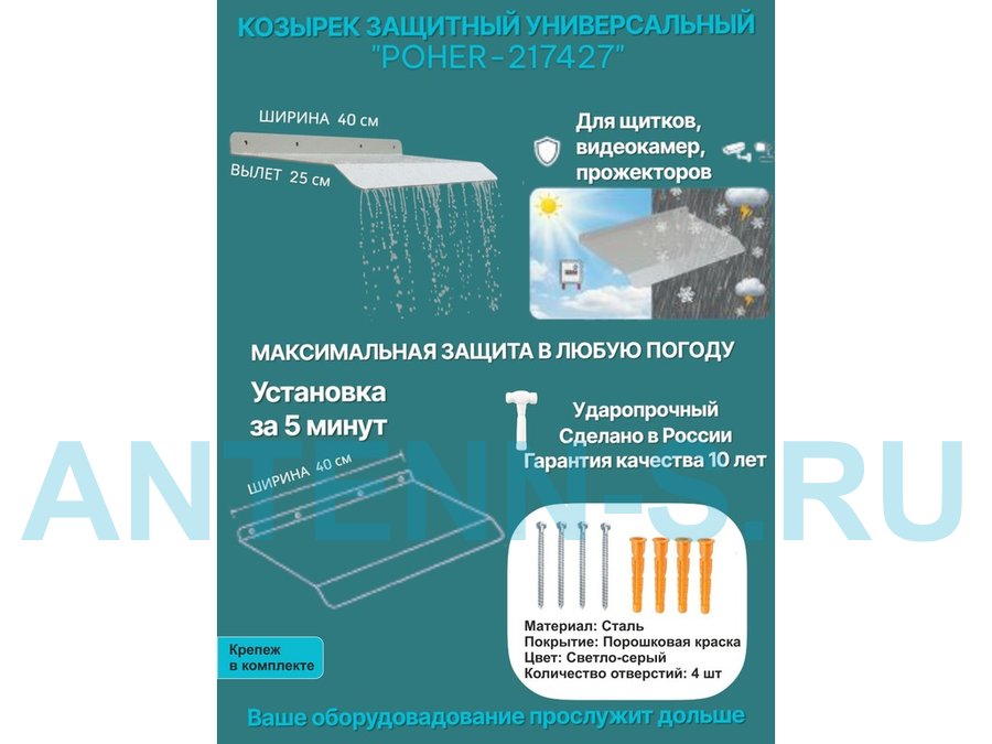 "POHER-217427" козырёк для защиты приборов и устройств от дождя и сосулек, ширина 41 см, вылет 27 см, стальной