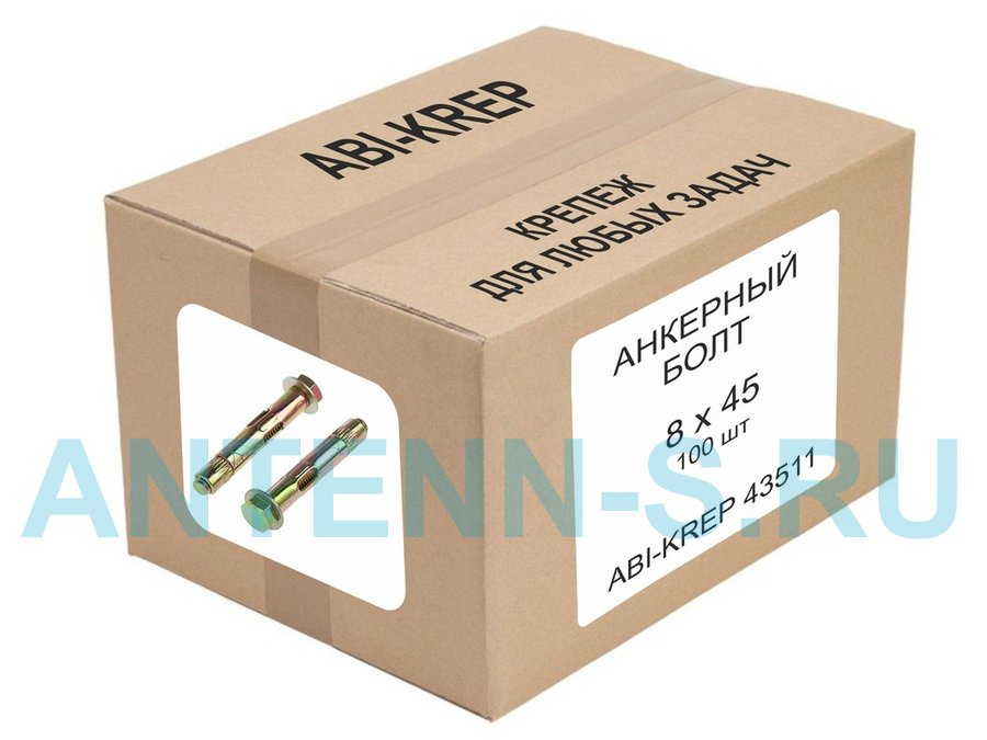 В корзину Купить в 1 клик Анкерный болт 8 x 45 100шт "ABI-KREP 43511" 2,15кг резьба М6, вес 1шт 21,5г