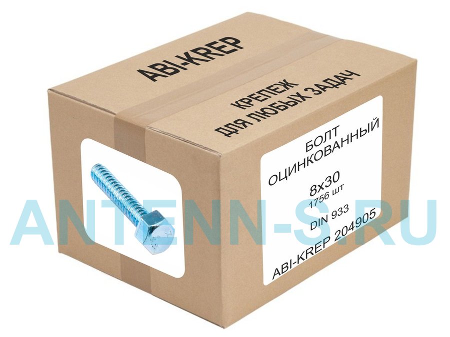 Болт оцинкованный 10х 20 DIN 933 (1000шт) "ABI-KREP 211476" 21,2кг, ключ 17мм, 21,2гр цена за 1000шт