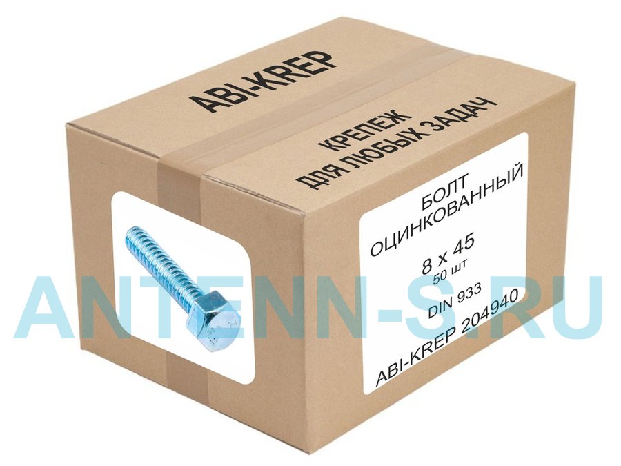 Болт оцинкованный 10х 25 DIN 933 ( 633шт) "ABI-KREP 44457" (к.п 8.8) 15,003кг, ключ 17мм, 1шт 23,7гр