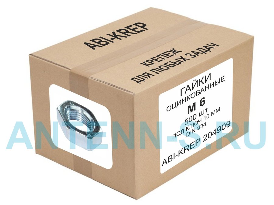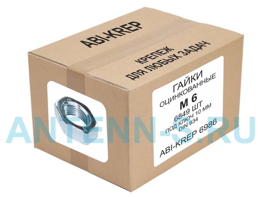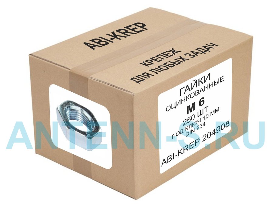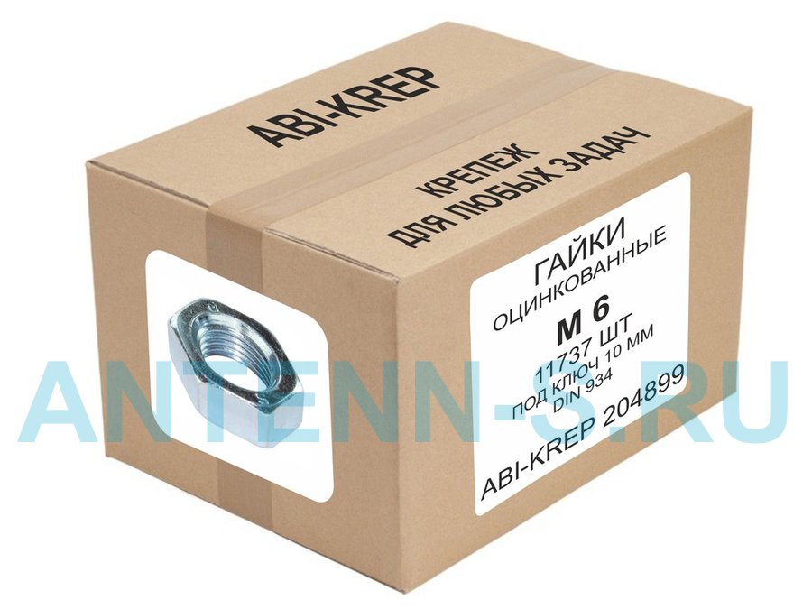 В корзину Купить в 1 клик Гайки оцинкованные М6 DIN 934 (1шт) "ABI-KREP 204899" под ключ 10мм, вес 1шт 2,19г