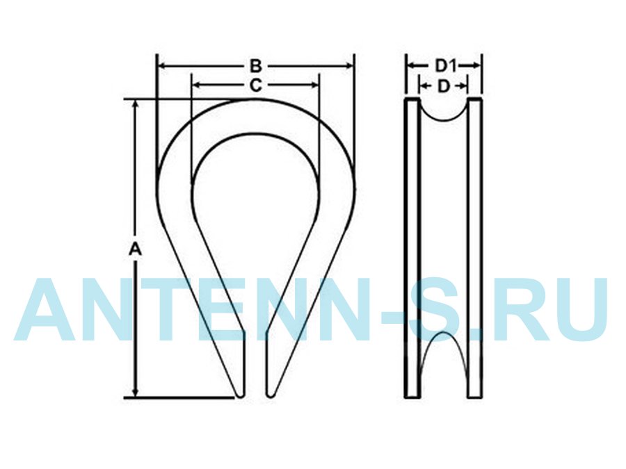 Коуш применяется для установки на трос при изготовлении петли. Предохраняет трос от перетирания, делает петлю плавной.