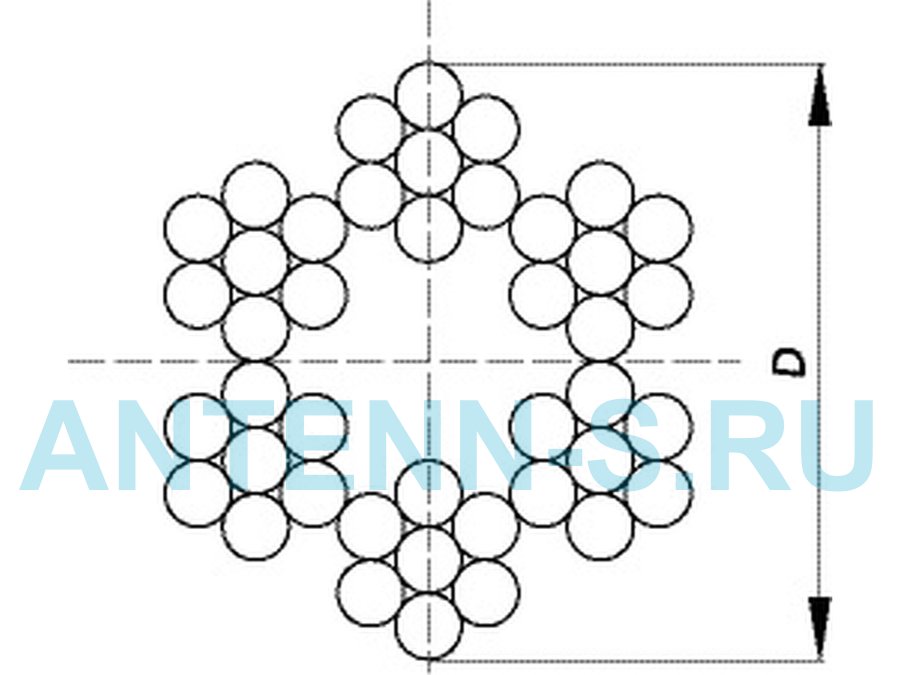 - Особенности конструкции: в зависимости от конструкции, трос имеет различную гибкость и коэффициент растяжения. Конструктивно трос изготовлен из высокопрочной проволоки и сердечника. Проволоку обвивают вокруг сердечника и получают прядь, пряди в свою очередь тоже обвивают вокруг сердечника и получают трос.