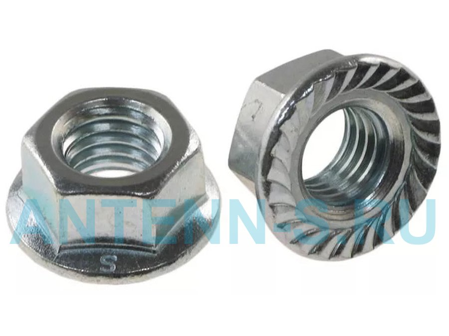 В корзину Купить в 1 клик Гайка шестигранная с фланцем, цинк DIN 6923 М6 (6500 шт) в упаковке 6500шт, вес 1шт г, цена за 1шт
