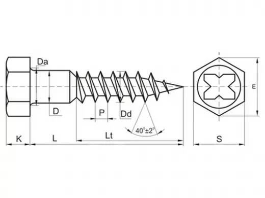 - Длина резьбы Lt=0,6*L