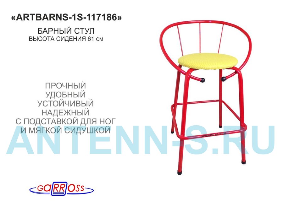 Барный стул "ARTBARNS-1S" органично дополнит интерьер модного заведения или домашней кухни. Стильная модель высотой 0,61 метра устойчиво стоит на четырех опорах с удобными подножками.