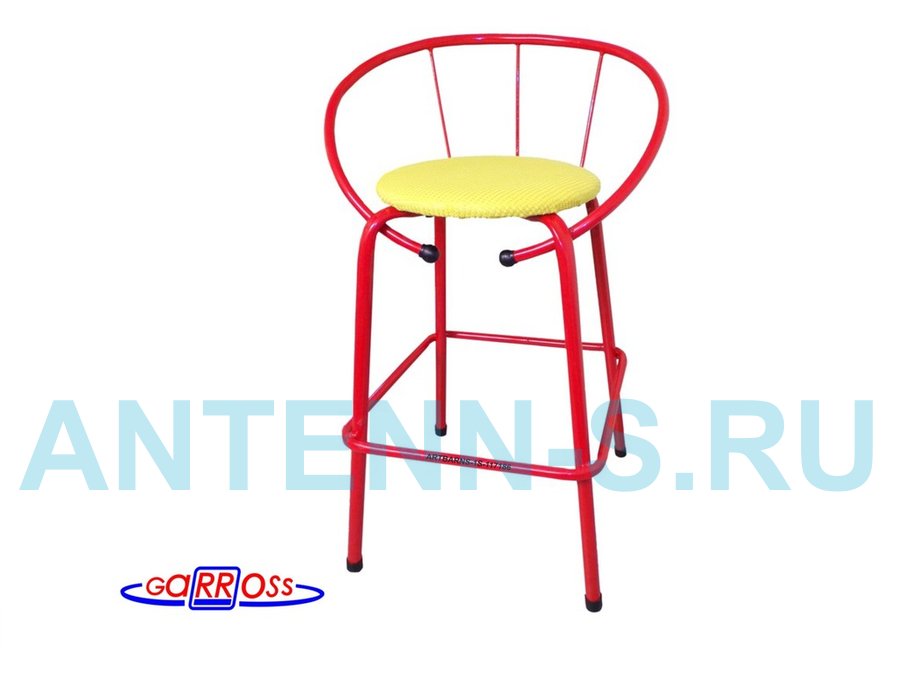 "ARTBARNS 1S-117186" cтул барный, табурет,спинка, высота 0,61м, 22мм,красные ножки/жёлтый верх ткань