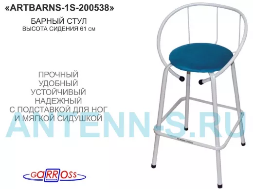 - "ARTBARNS-1S" позволит уютно расположиться, облокотиться на спинку и провести немало приятных минут за коктейлями и беседой. Сиденье удобной формы обито тканью.