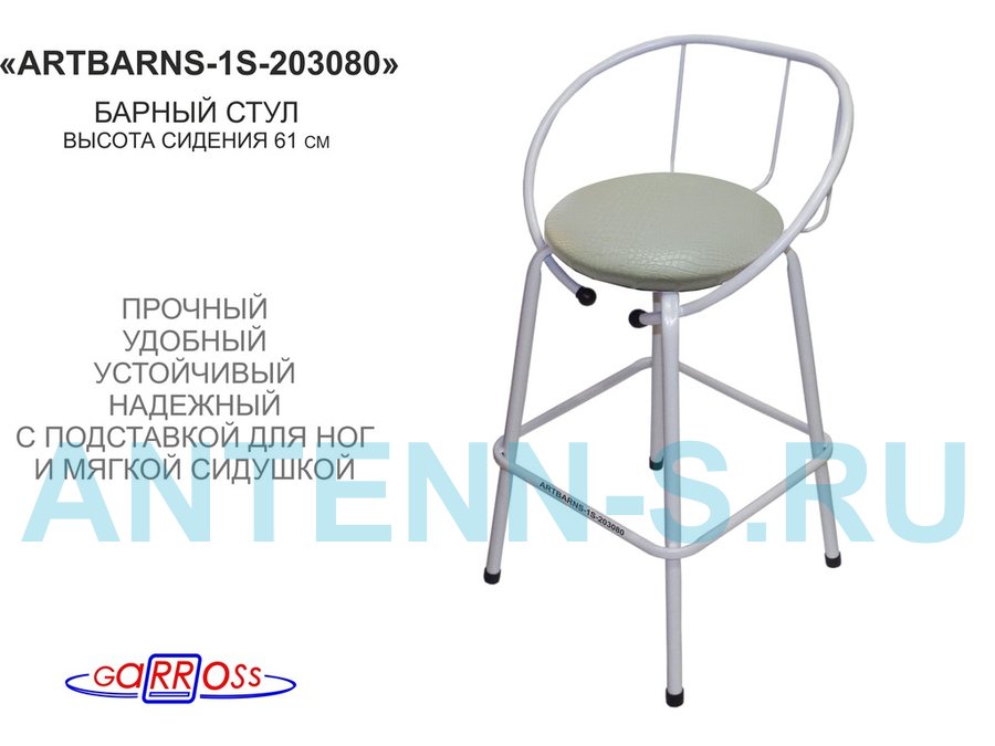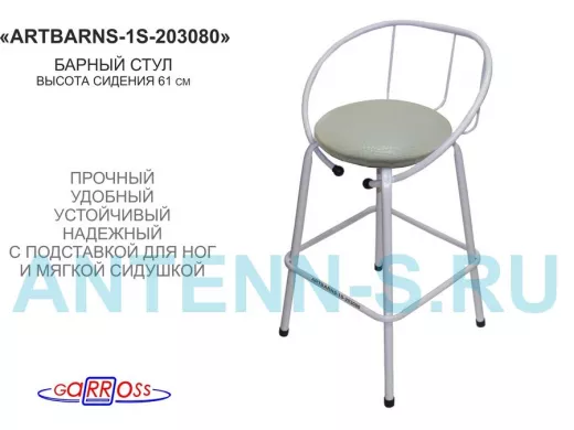 - "ARTBARNS-1S" позволит уютно расположиться, облокотиться на спинку и провести немало приятных минут за коктейлями и беседой. Сиденье удобной формы обито тканью.