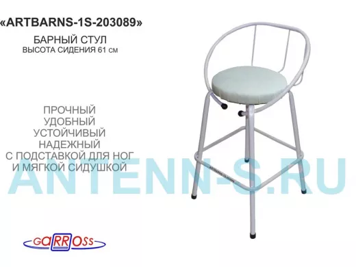- "ARTBARNS-1S" позволит уютно расположиться, облокотиться на спинку и провести немало приятных минут за коктейлями и беседой. Сиденье удобной формы обито тканью.