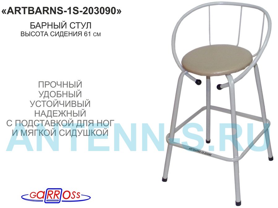 Барный стул "ARTBARNS-1S" органично дополнит интерьер модного заведения или домашней кухни. Стильная модель высотой 0,61 метра устойчиво стоит на четырех опорах с удобными подножками.
