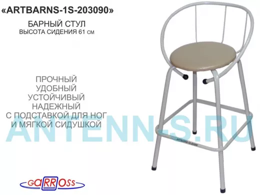 - "ARTBARNS-1S" позволит уютно расположиться, облокотиться на спинку и провести немало приятных минут за коктейлями и беседой. Сиденье удобной формы обито тканью.