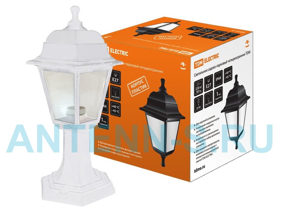 В корзину Купить в 1 клик Светильник садово-парковый НТУ 04-60-001 четырехгранник, стойка, пластик, белый TDM SQ0330-0735