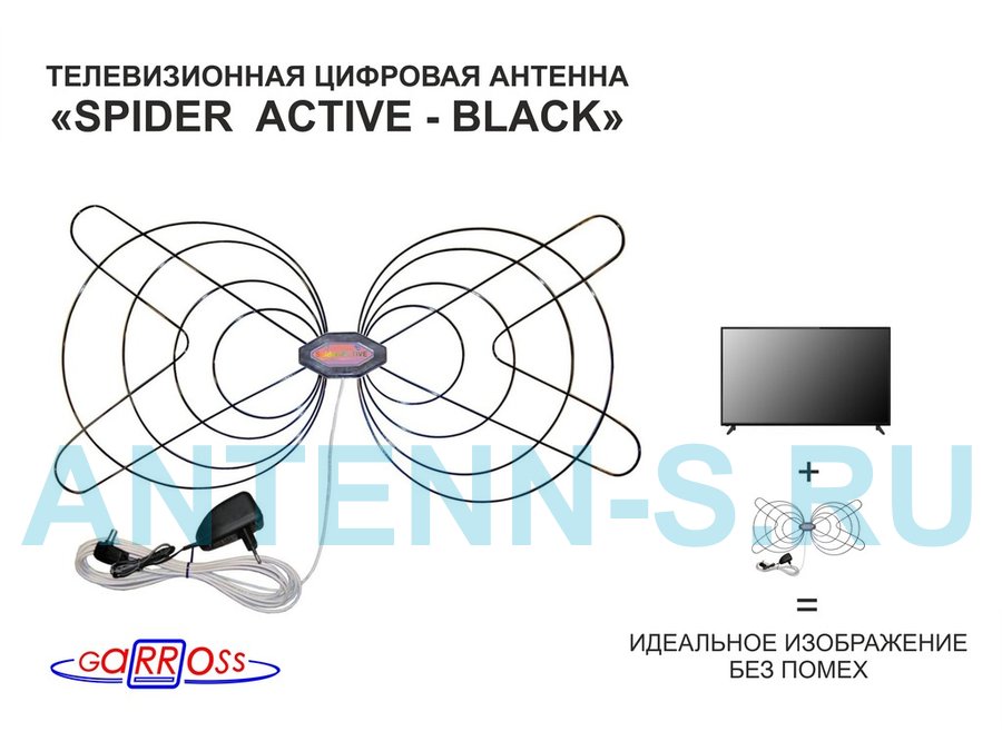 "БАБОЧКА- 1А-12ВОЛЬТ" ЧЁРНАЯ РЕГУЛИРУЕМАЯ АКТИВНАЯ антенна комнат. с усилителем DVB-T2, блок питания