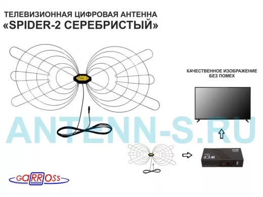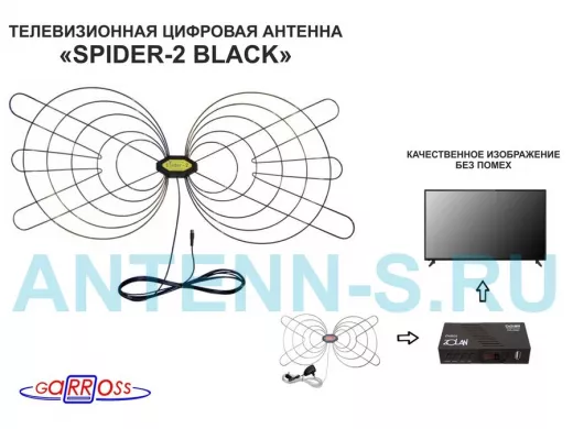 "БАБОЧКА- 7 МАГНИТ" черная комнатная телевизионная антенна предназначена для приема цифрового DVB-T2