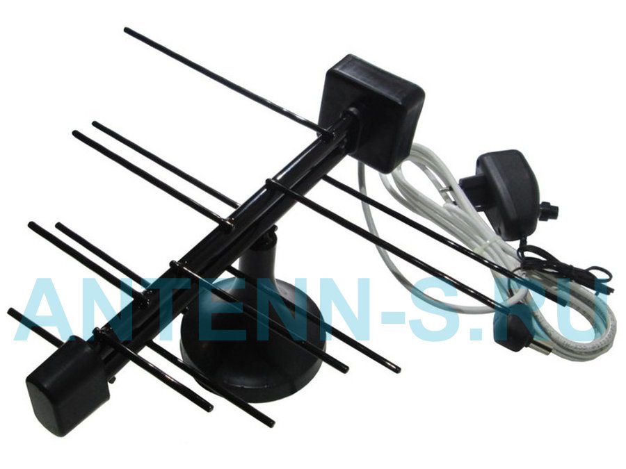 - Антенна имеет рукоятку для регулирования усиления, это позволяет добиться наилучшего качества изображения и звука